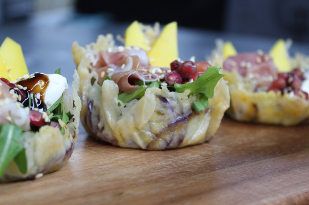 Parmesan Tuile with Prosciutto & Pomegranate